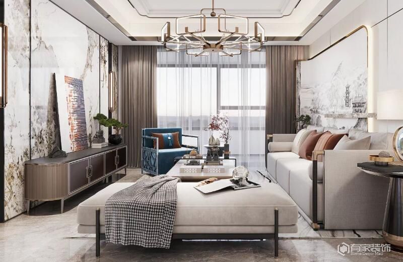 廈門海投自貿(mào)城126㎡輕奢美式風(fēng),敞亮的開放式客廳+書房