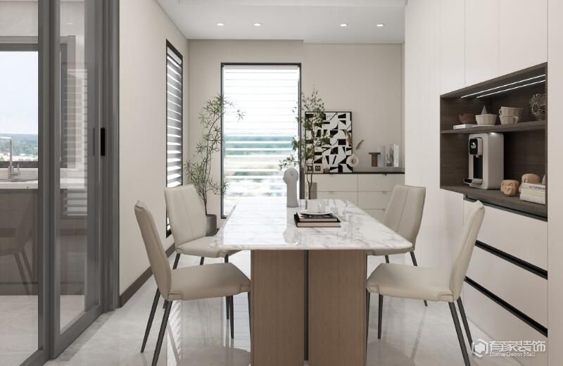 根據(jù)餐廳空間大小和使用需求,廈門裝飾設(shè)計確定餐邊柜尺寸。餐邊柜作為餐廳收納主力,應(yīng)具備多元功能,分層規(guī)劃??臻g寬敞的餐廳,打造大型通頂餐邊柜;空間有限選擇簡約小巧款式。餐邊柜的深度,一般在30到40厘米為宜。利用墻面空間,安裝壁掛式置物架是個明智之舉。在廚房與餐廳相鄰的墻面,或是餐邊柜側(cè)面,安裝掛鉤或掛桿,用于懸掛圍裙、抹布、餐具瀝水架等。